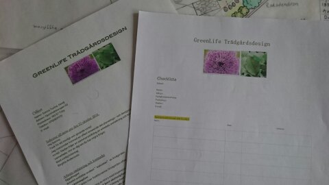 Detta är ett komplett och fullständig förslag där du förutom illustrationsplanen också får en detaljerad planteringsplan, ritad i svartvitt. Växternas placering framgår i detalj och hårdgjorda ytor är inritade med exakthet.. Du får en fullständig växt- och materiallista som kan användas som underlag för inköp samt andra beskrivande dokument såsom växtinformation med bilder samt skötsel-. och planteringsråd.